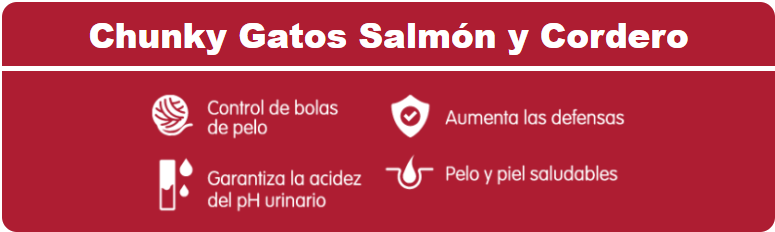 Alimento para gatos Chunky Salmón y Cordero es la opción ideal para brindarle a tu gato una nutrición completa y balanceada con sabores irresistibles que combinan la delicadeza del salmón y la riqueza del cordero. Esta fórmula especialmente desarrollada cubre todas las necesidades diarias de tu felino, asegurando su bienestar y vitalidad.